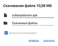 На некоторых смартфонах может быть включена защита от скачивания файлов АРК, отключите или подтвердите загрузку конкретно этого приложения; перейти в папку «Загрузки». Найдите там загруженный файл vulkan-platinum, нажмите на него. Следуя инструкции на экране, установите приложение. После чего можете запускать любимые слоты где угодно, играть и выигрывать деньги.